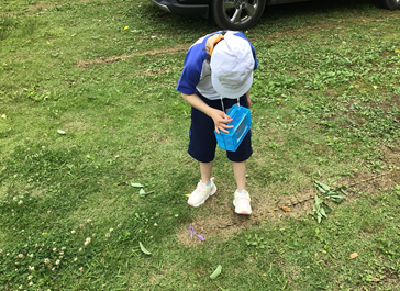 生活科の学習で、春の虫について調べました。虫かごや網を持って、外に探しに行き、捕まえた虫の観察を行いました。虫の育て方を調べ、協力して過ごしやすい家を作りました。毎日、餌をあげたり、水を変えたりしながらお世話を頑張っています。